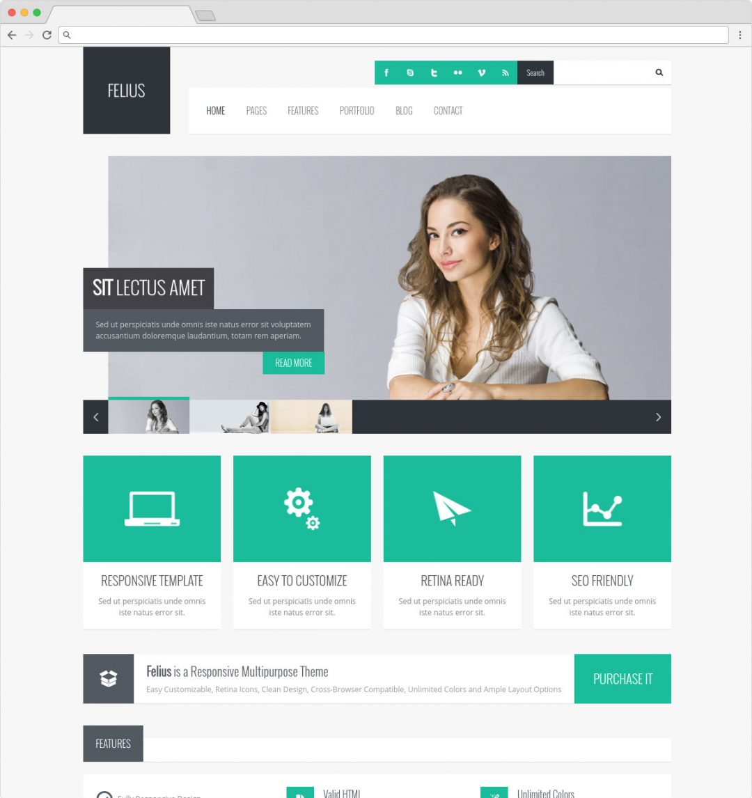 Templified Felius WordPress Flat Metro Style Blog Theme