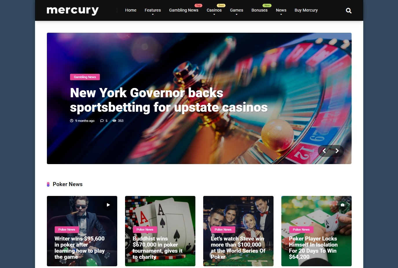 Mercury, Gambling News Casino Affiliate WordPress Theme
