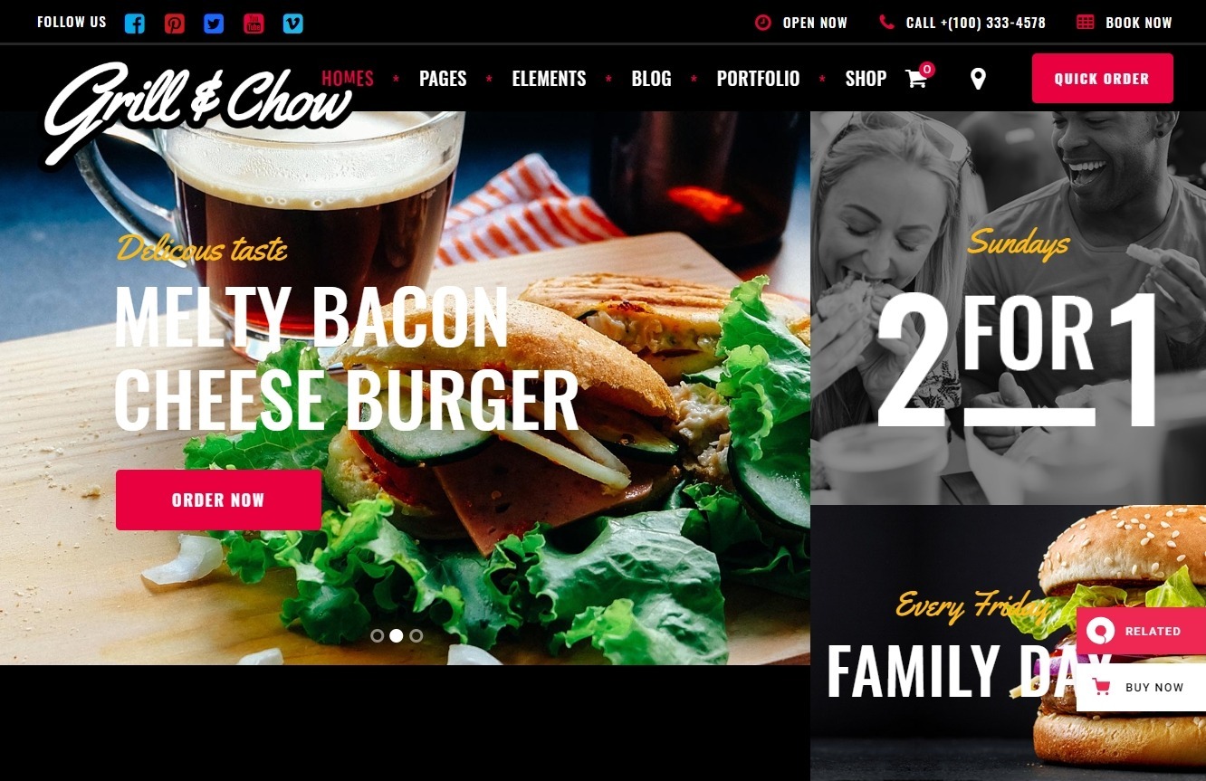 Grill and Chow WordPress Restaurant Theme for Fast Food