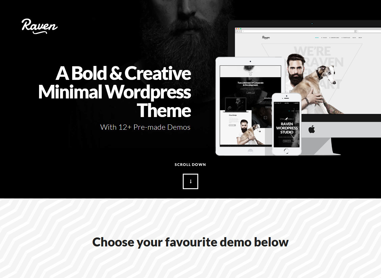 Raven Creative Black White Minimal WordPress Theme