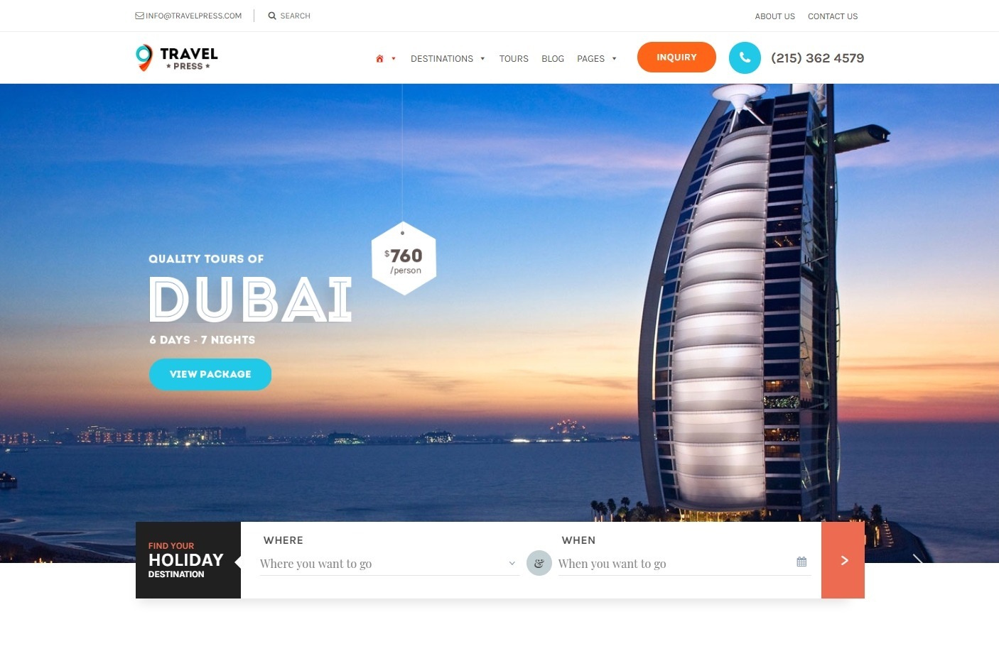 TravelPress Travel Agency and Holiday Booking WordPress Theme